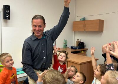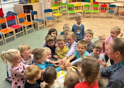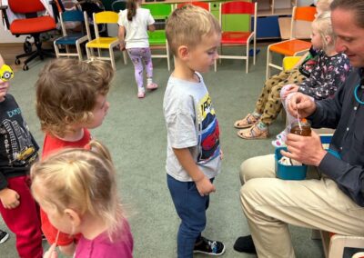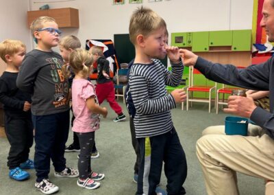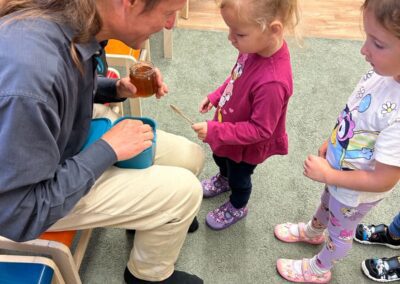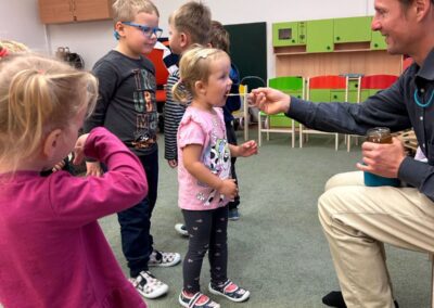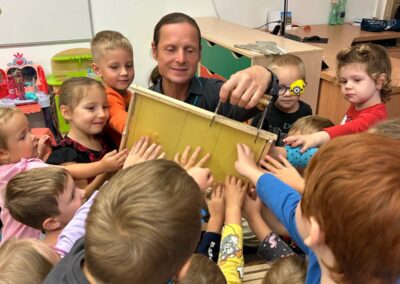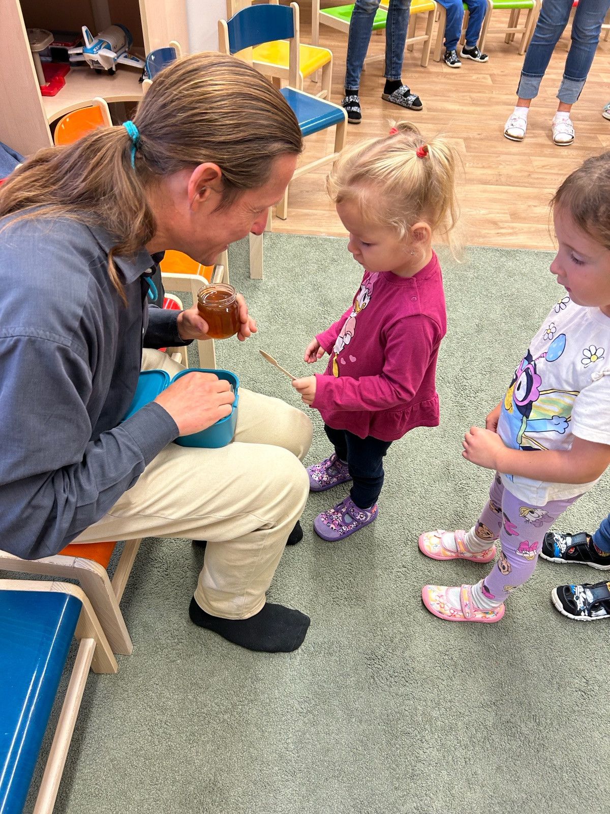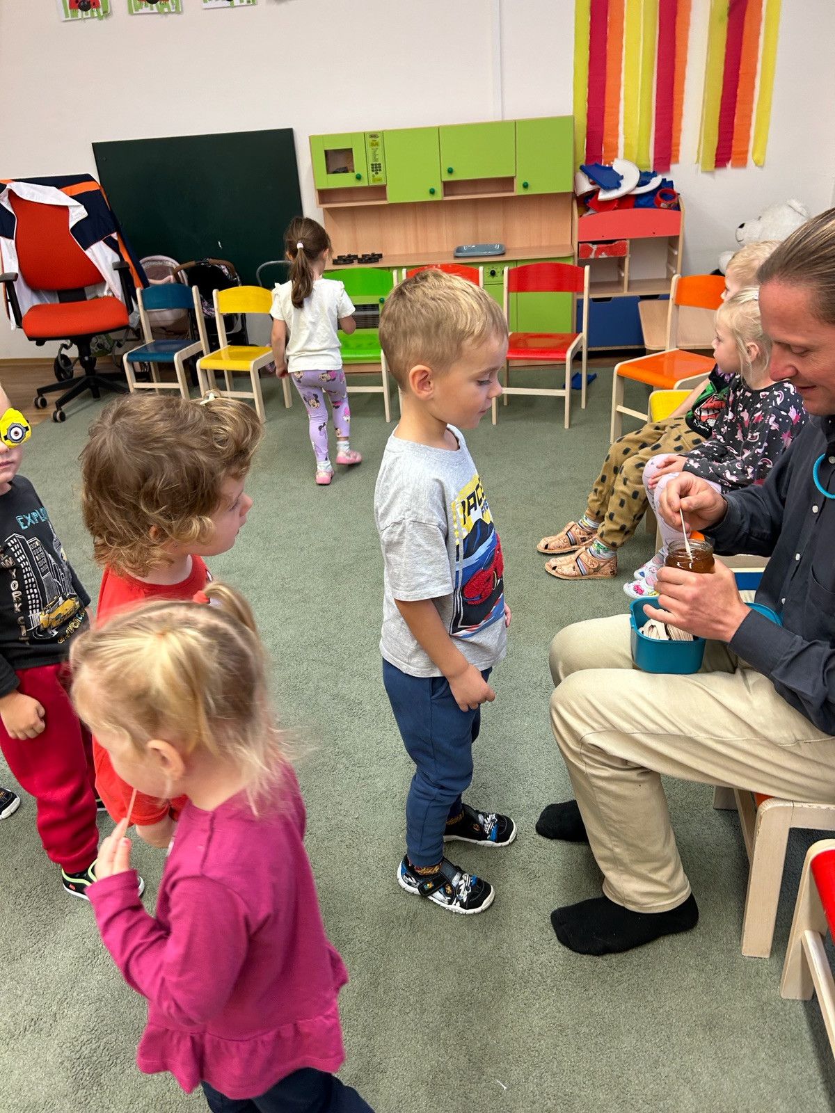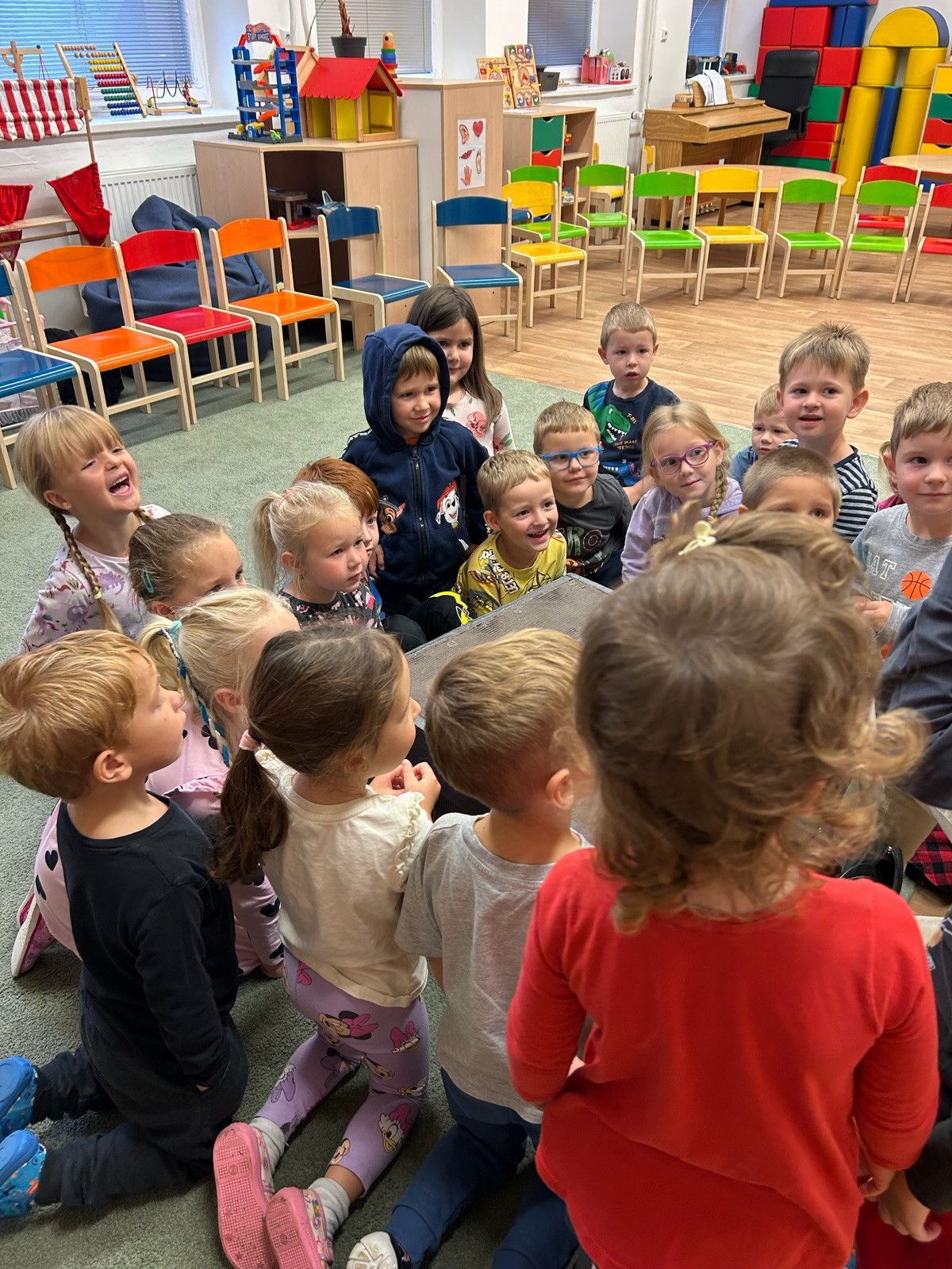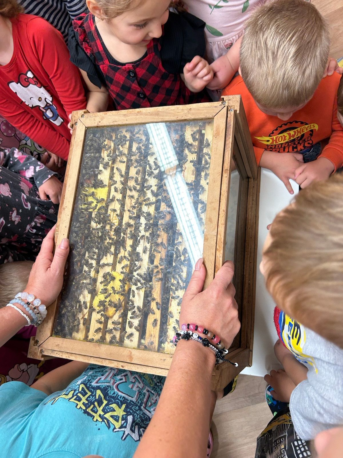 V pátek 26. 9. k nám do školky zavítal pan včelař a dětem zábavnou formou ukázal kousek ze života včel. Děti si mohly prohlédnout pomůcky, které včelaři používají, a zblízka viděly i samotné včelky. Velkým zážitkem byla ochutnávka medu, který všem moc chutnal. Na závěr měly děti prostor na otázky a pan včelař jim rád odpověděl.