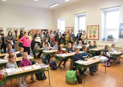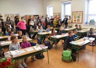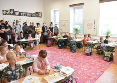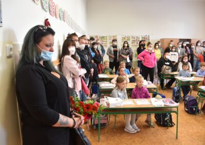 Ve středu 1. září 2021 jsme společně s vedením školy a města Dolní Kounice přivítali na Barborce 54 šikovných prvňáčků. Byli nastrojeni, měli krásné aktovky a těšili se na nové a neznámé dobrodružství – školu. Za první školní rok se naučí číst, psát a počítat. Není to málo. Na upomínku velkého dne dostaly děti dárečky a my jim přejeme, aby pro ně škola byla místem, kde se scházejí s kamarády a kde se naučí mnoho nového.