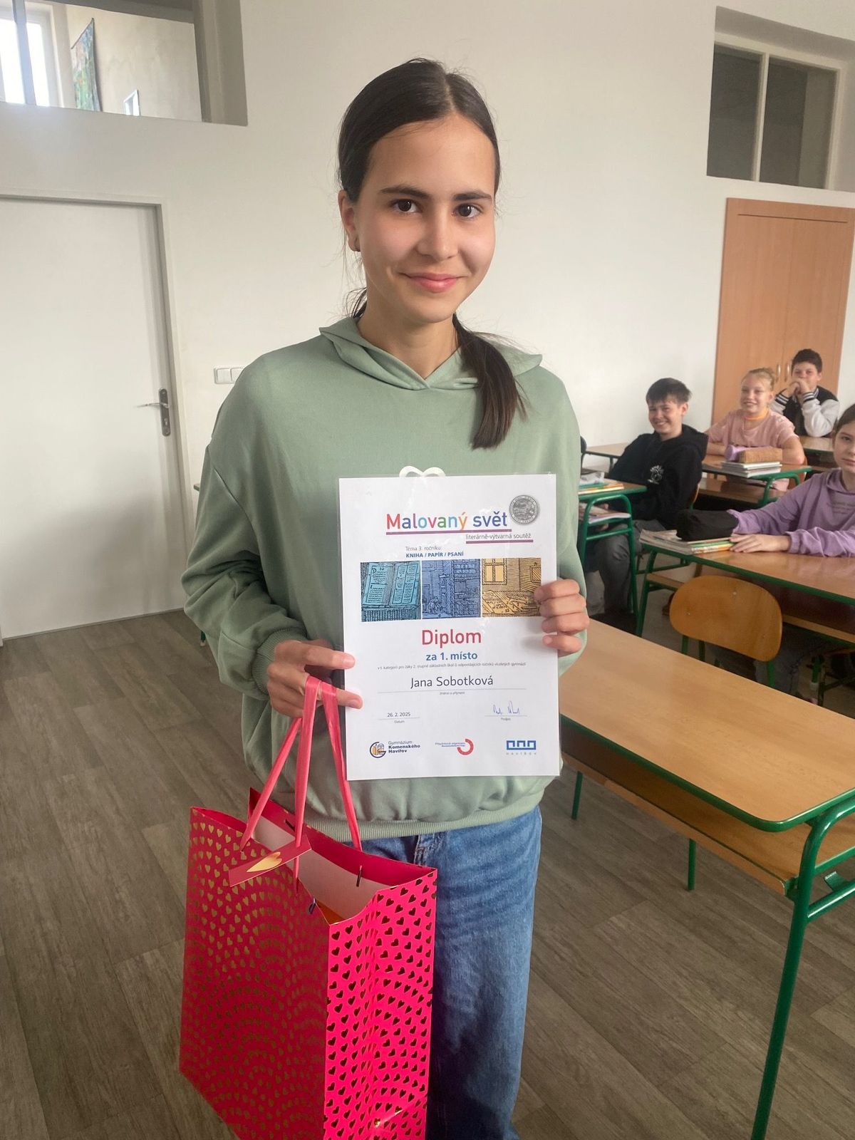 Na 1. místě se umístila Jana Sobotková z 6.B, na 2. Kristýna Šmerdová z 6.A a zvláštní ocenění získala Adéla Šarounová z 6.B.
