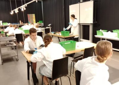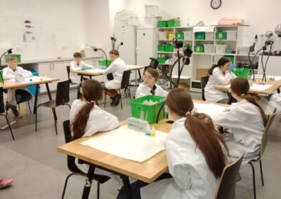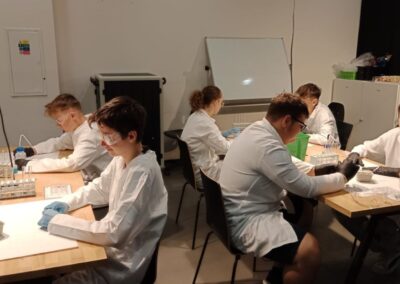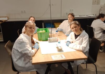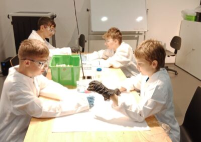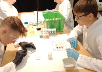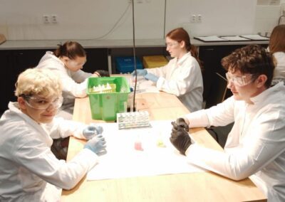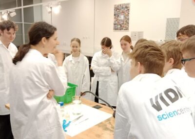 Dne 2. 5. 2025 navštívili žáci 8. ročníků v rámci Dne Země vědecký zábavný park VIDA v Brně. Zúčastnili se výukového programu Barevná chemie, při kterém si v chemické laboratoři vyzkoušeli rozlišné chemické reakce a práci s indikátory. Poté si prohlédli expozici. Součástí programu byla i science show s názvem Pod tlakem.